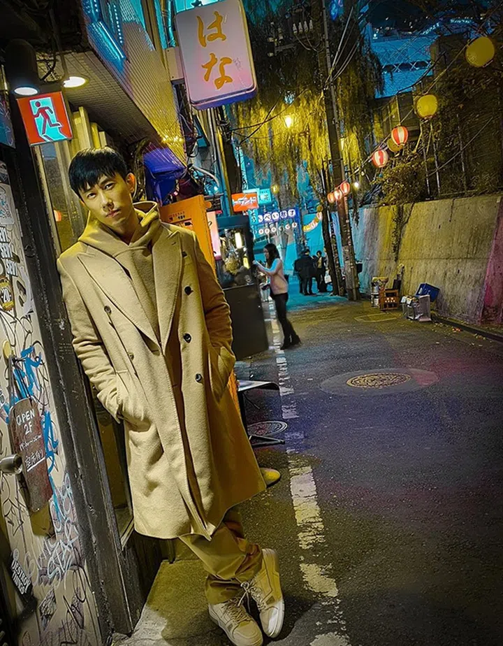 陈炯江无意间找到两年前在日本的街拍照。照片里陈炯江身穿一身大地色系的Louis Vuitton,在美丽的背景下营造了精彩的视觉感。