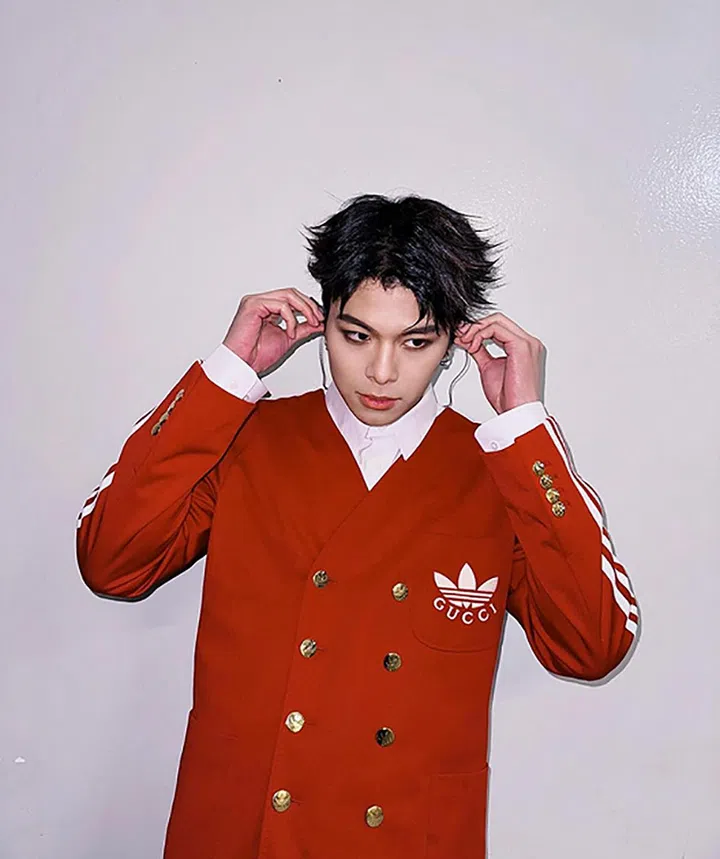 11月份Glenn在《Sing•浪2022》演唱会上献唱,舞台造型选择以ADIDAS X GUCCI联名系列的红色针织外套,内搭白色衬衫,融和复古美学与运动风,抢眼醒目!