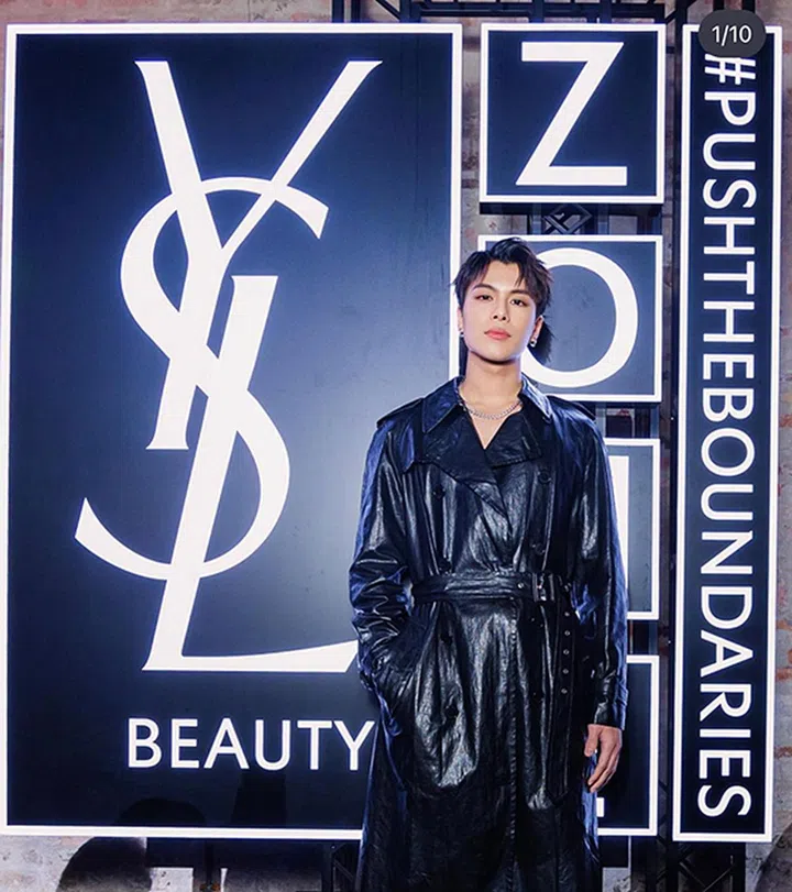 11月到吉隆坡出席YSL Beauty活动,他身穿Saint Laurent的漆面风衣,以简单的银饰耳环和项链添加粗犷感,展现神秘暗黑的男孩魅力。