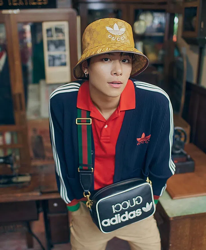 今年推出的adidas x Gucci联名系列,融合了百年时装品牌和经典街头运动品牌的标志性元素,各种色彩交织,而他也完全能“消化”这类文艺复古的运动风,穿出俏皮好玩的味道。