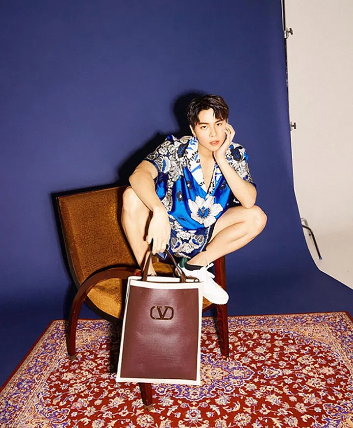 能把花花图案和丝质材质的单品,穿得“不油不腻”,足见他驾驭时尚风格的功力确实不俗。早前他在IG分享时尚写真,身穿Valentino The Party系列单品,度假风蓝白色印花衬衫配同款短裤,散发随性阳光的气息。