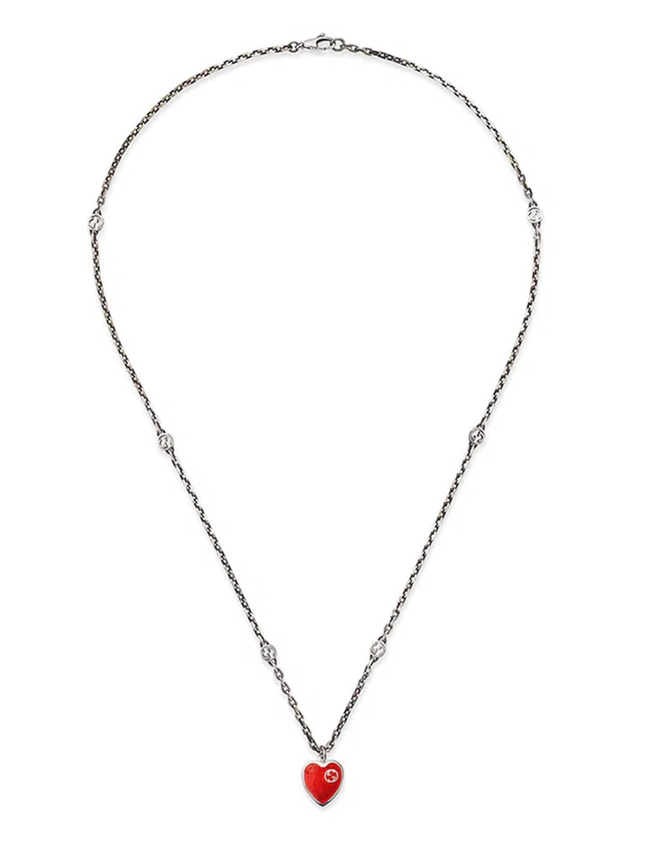 以经典Interlocking G标志装饰红色珐琅心形项坠,整体外观具有复古质感,同时又容易搭配日常服装。简单穿上一件白T-shirt,再戴上这款项链,就能一眼吸引人的注意。