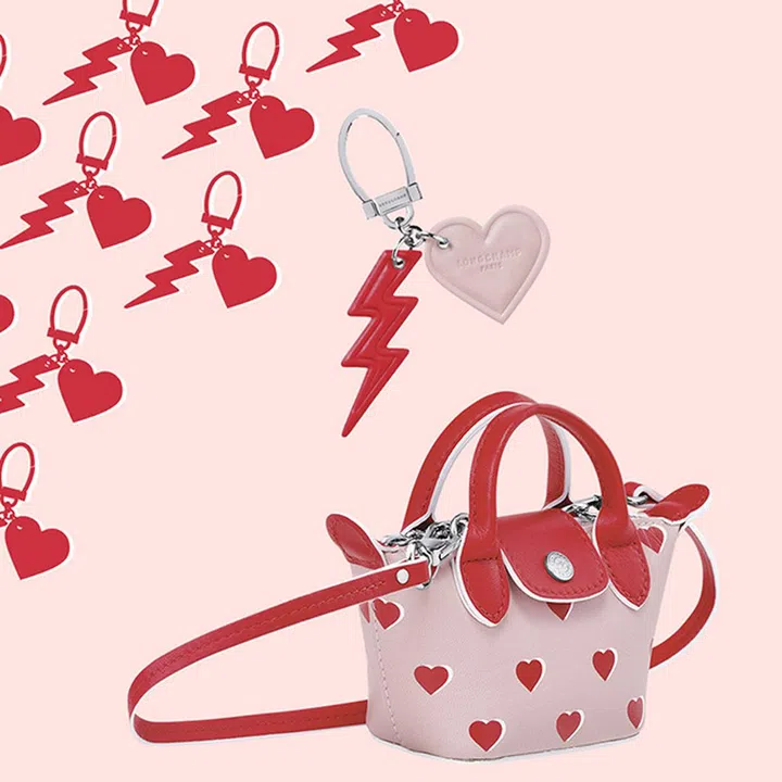 Longchamp以情人节”爱心“元素打造限量版Le Pliage Cuir Saint-Valentin手袋,上图所示为XS Crossbody袋型,另外还有一款XS Top Handle bag售价$700,目前已在Longchamp专店开售。