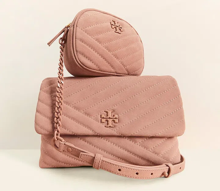 Tory Burch全新推出的情人节系列,包括Minnie Travel芭蕾平底鞋、Kira Chevron肩袋、Perry Bombe迷你袋、耳钉、卡夹及一款开襟衫。系列全部采用浅粉配色,送给“粉色控”当礼物定不会错。