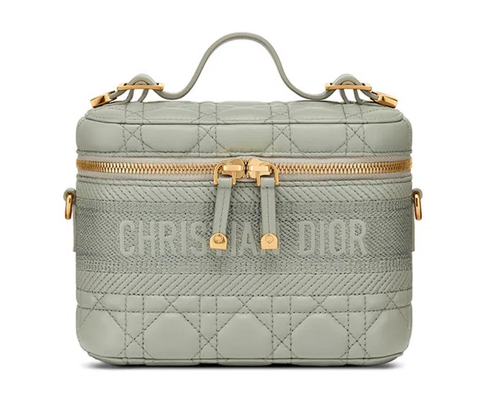 化妆包造型的手袋越来越越夯,Dior也为其vanity case包包打造带cannage motif的最新款式,名为DiorTravel。手袋装饰“Christian Dior"字样,并有小型及微型尺寸,以及多种柔和色彩供选。