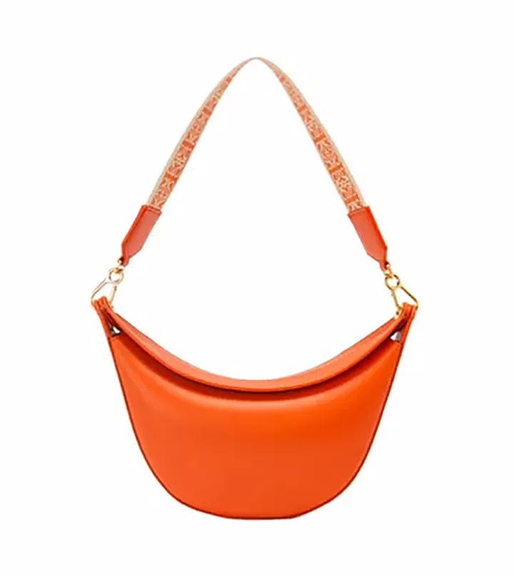 顾名思义,Loewe的Luna Bag是一款半月形手袋,采用极具雕塑感的弧形双唇开合设计,隐藏式滑动孔眼让手袋可以定制挂饰,或附加不同长度的肩带,早秋推出的新色有活泼的亮橘色和清新的绿色。