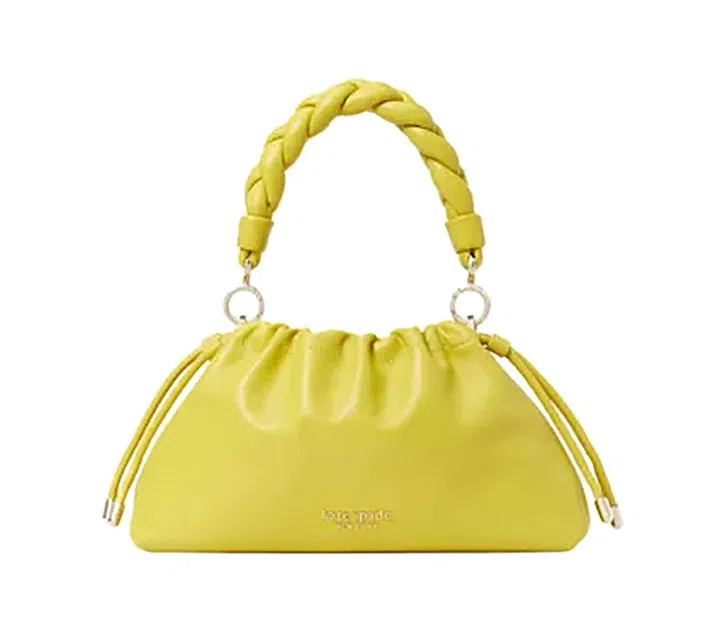 除了常见的经典款,Kate Spade历年来也推出一些造型独特的手袋,如心形钱包和水果形手袋。今年早秋系列的吸睛新品是这款Meringue小号斜挎包。采用亮面的纳帕皮革制成,顶部像束带一样可以收紧,配有别致的编织手柄。粉嫩的柠檬黄色清新甜美,其他配色选择还有粉蓝、玫瑰粉和灰白色。