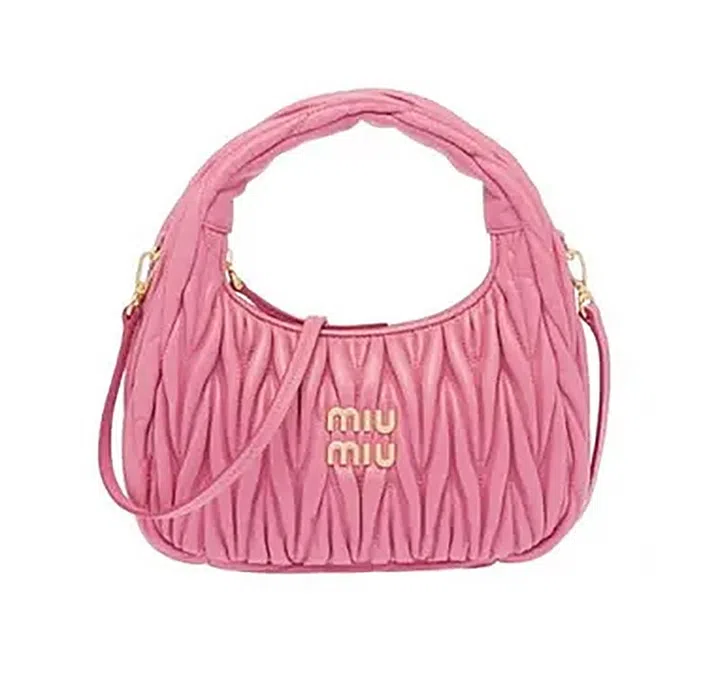 Miu Miu 每一季都会为Miu Wander手袋推出新设计,最新释出的这款迷你半月手袋,轻易冲击女孩的心。保留袋身的标志性皱褶设计,将原本的尼龙材质换成了柔软的Matelassé牛皮,质感十足。另外,也配有新增的长肩带设计,提供一包两用的背法,既可当肩背包,也可以当时尚的腋下包。
