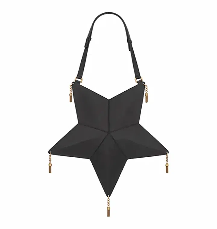 Saint Laurent向来以简约个性的手袋著称,新推出的Astro Bag单肩包,以小牛皮制作醒目大胆的五角星包身,绝对是穿搭的亮点单品。金属流苏则象征流星划过夜空留下的光芒,灵动浪漫。
