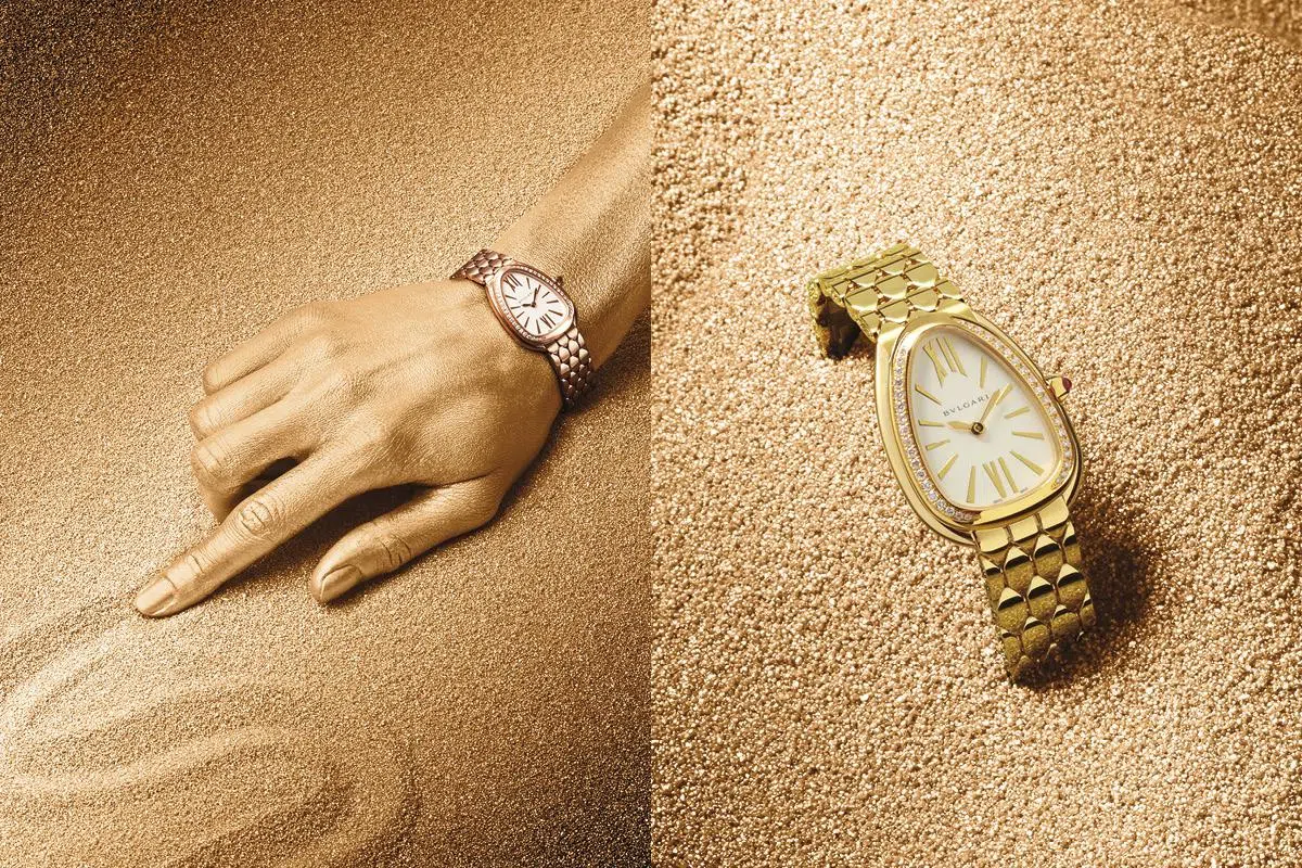 意大利品牌Bvlgari今年推出全新Serpenti Seduttori日常腕表系列,以优雅的金材质,诠释经典灵蛇元素,并完美帖服在手腕上。
