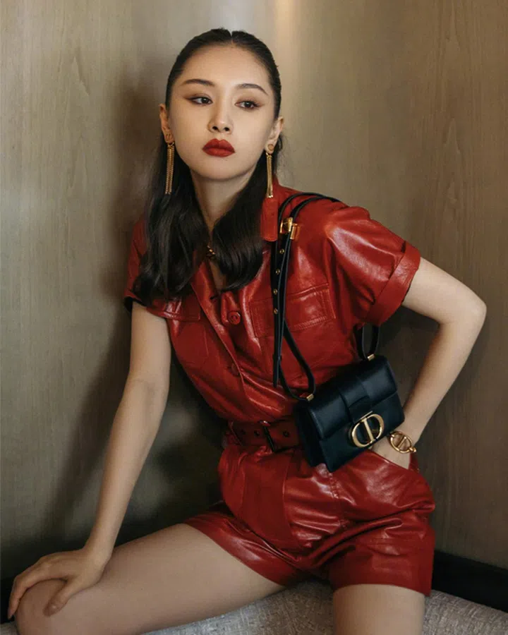 Dior代言人Angelababy也“帅”先背这款比脸还小的Lady Dior包,一袭格纹西装外套及裙大展俏皮的学院风。