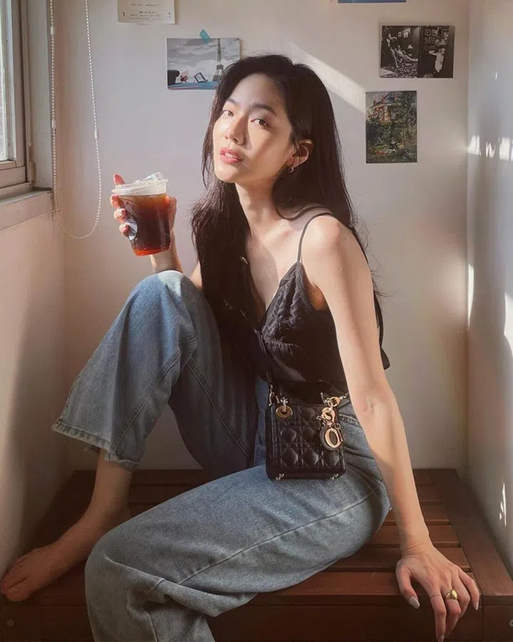 乔乔则以柔美的黑条带上衣及牛仔裤搭配超迷你Lady Dior,穿出effortless的时尚态度。