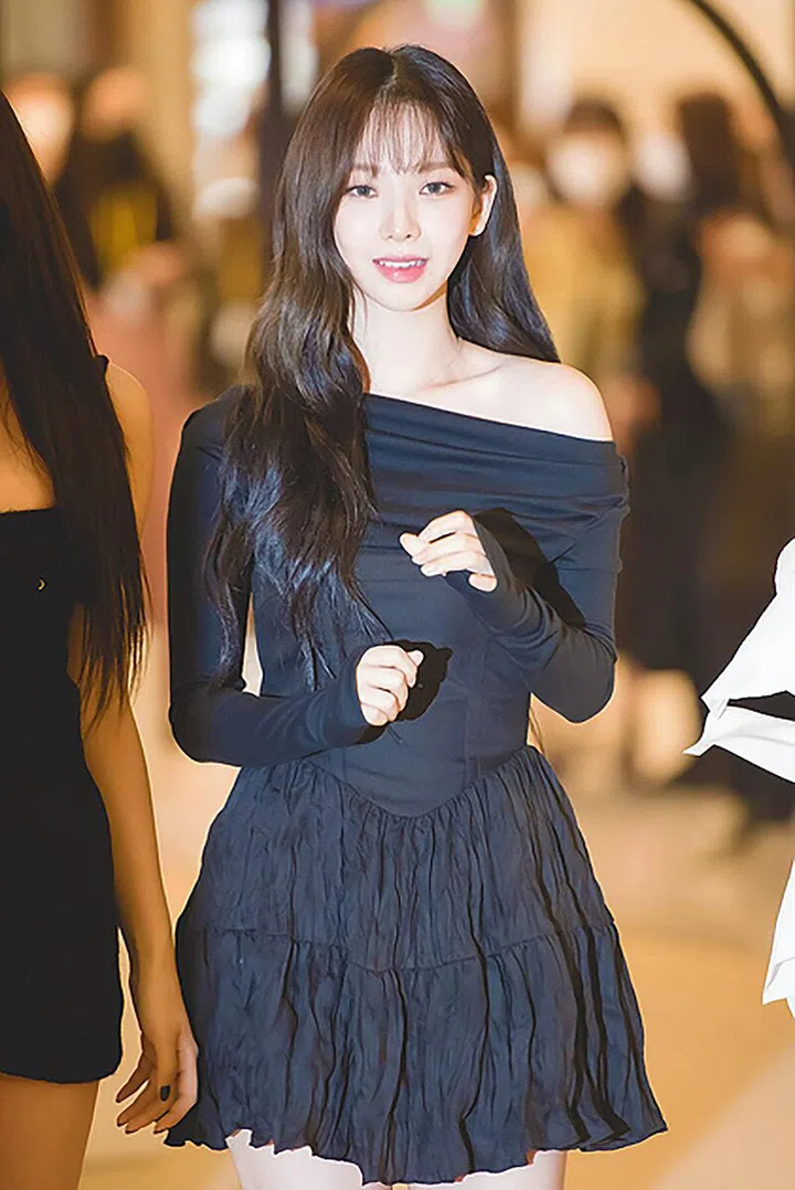 aespa队长Karina,也曾穿着露单肩设计的褶皱蓬蓬裙Lily dress出席活动。可见,品牌的单肩连衣裙设计可谓最受韩星欢迎的热款之一。