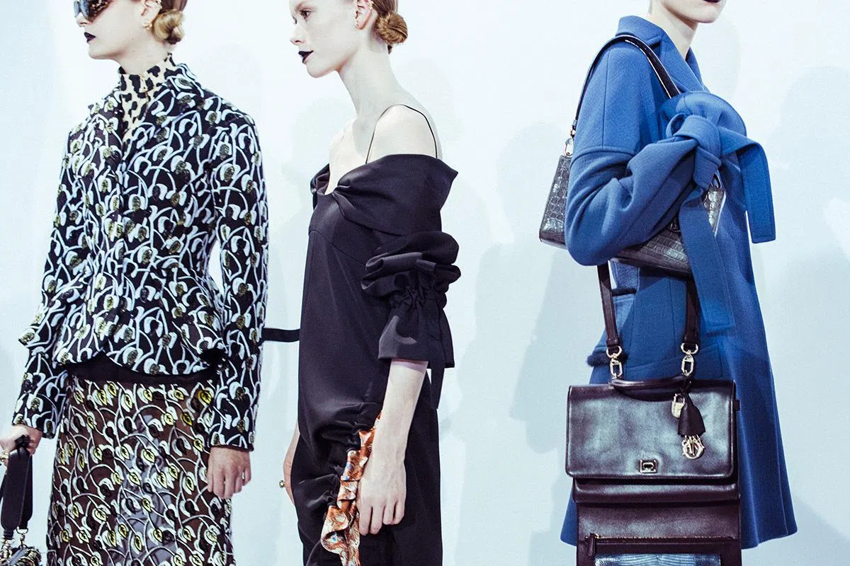 当然品牌标记元素是不能或缺的——lily of the valley铃兰花图腾以印花或刺绣方式呈现、经典Bar外套因材质(如裘毛)及裁剪(如off-shoulder设计)而展现出新意。