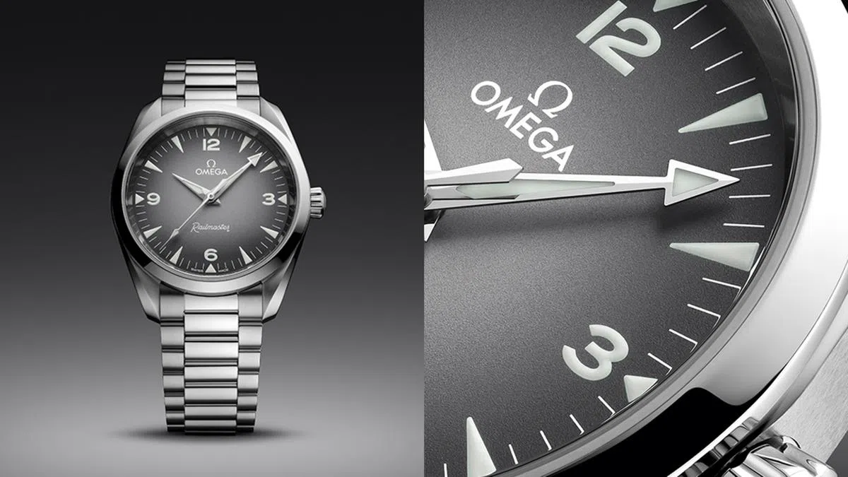 38mm表径的腕表共带来两种表盘设计:一款为灰黑渐变表盘,仅保留Omega和Railmaster字样,并带有白色Super-LumiNova夜光显示,提供新设计表链款及黑色皮革款选择;另一款为米黑渐变表盘,与2004年发布的Railmaster相似——配备小秒针功能,并使用复古色Super-LumiNova夜光,有新设计表链款及金棕色Novonappa皮革表带款可选。