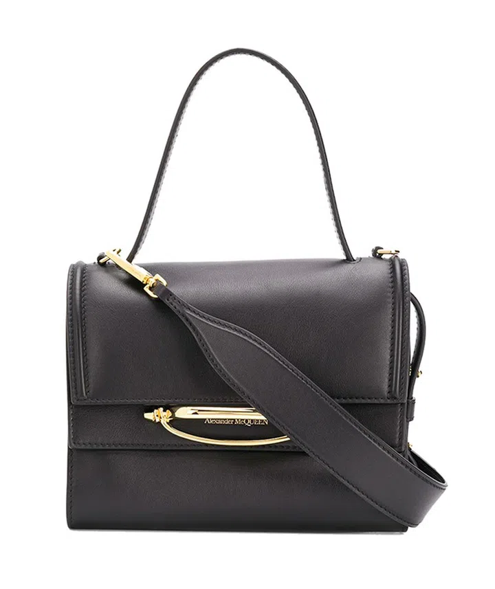 来自不不少女星都爱背的Alexander McQueen的The Story手袋系列。可将手穿过正面金属手柄当作手握袋,也可使用肩带斜挎。
