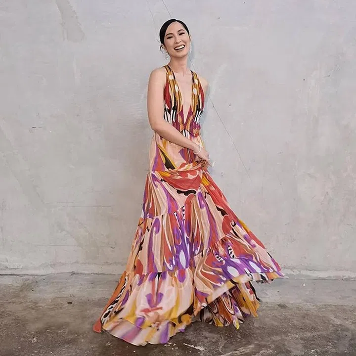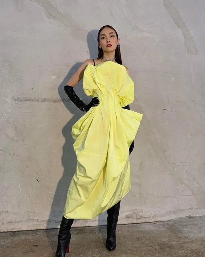 Chantalle以一袭抢眼的红色Bottega Veneta亮片连衣裙,搭配 Cartier首饰亮相,造型端庄高雅,展现出她成熟的一面。其造型师Donson分享要点:“这个连衣裙的剪裁偏oversized, 站着时很服贴能彰显身型,但走起路来却很有飘逸感。”