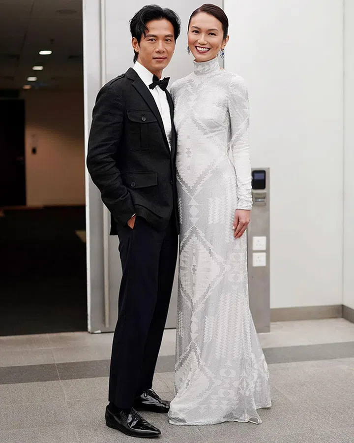 情侣洪凌和张鈞淯一起亮相红毯,洪凌以一袭Andrew Gn黑裙+面纱登场并佩戴Tiffany & Co.珠宝,外加张鈞淯“休闲帅气”的造型,两人显得个性十足。