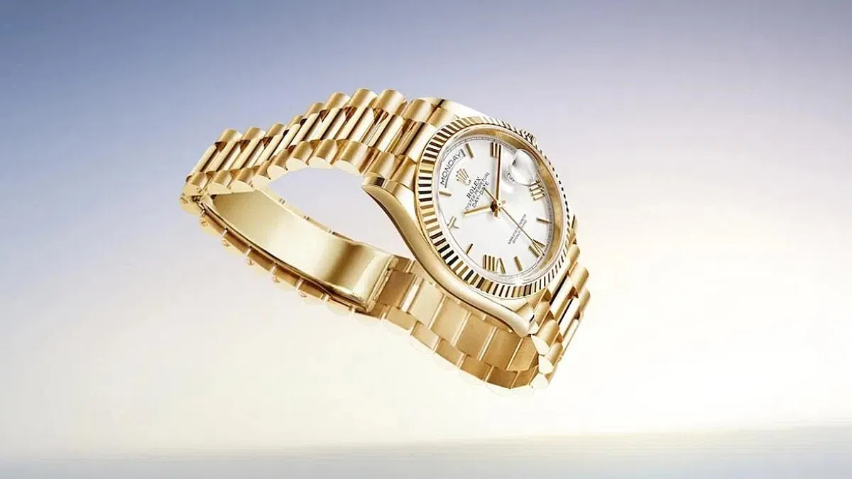背后的故事:Rolex的旗舰款Day-Date无疑是一款非常奢华的腕表——如果它的同胞款Datejust是日常佩戴款,那么Day-Date就是那款讲究奢华的设计;后者仅由铂金、黄色金、白色金和Everose金(Rolex的粉色金版本)等贵金属制成。此外,Day-Date还配备了品牌标志性的三段式链接总统表带(该表带是为Day-Date首次亮相时专门设计的),进一步强化了它的顶级地位。