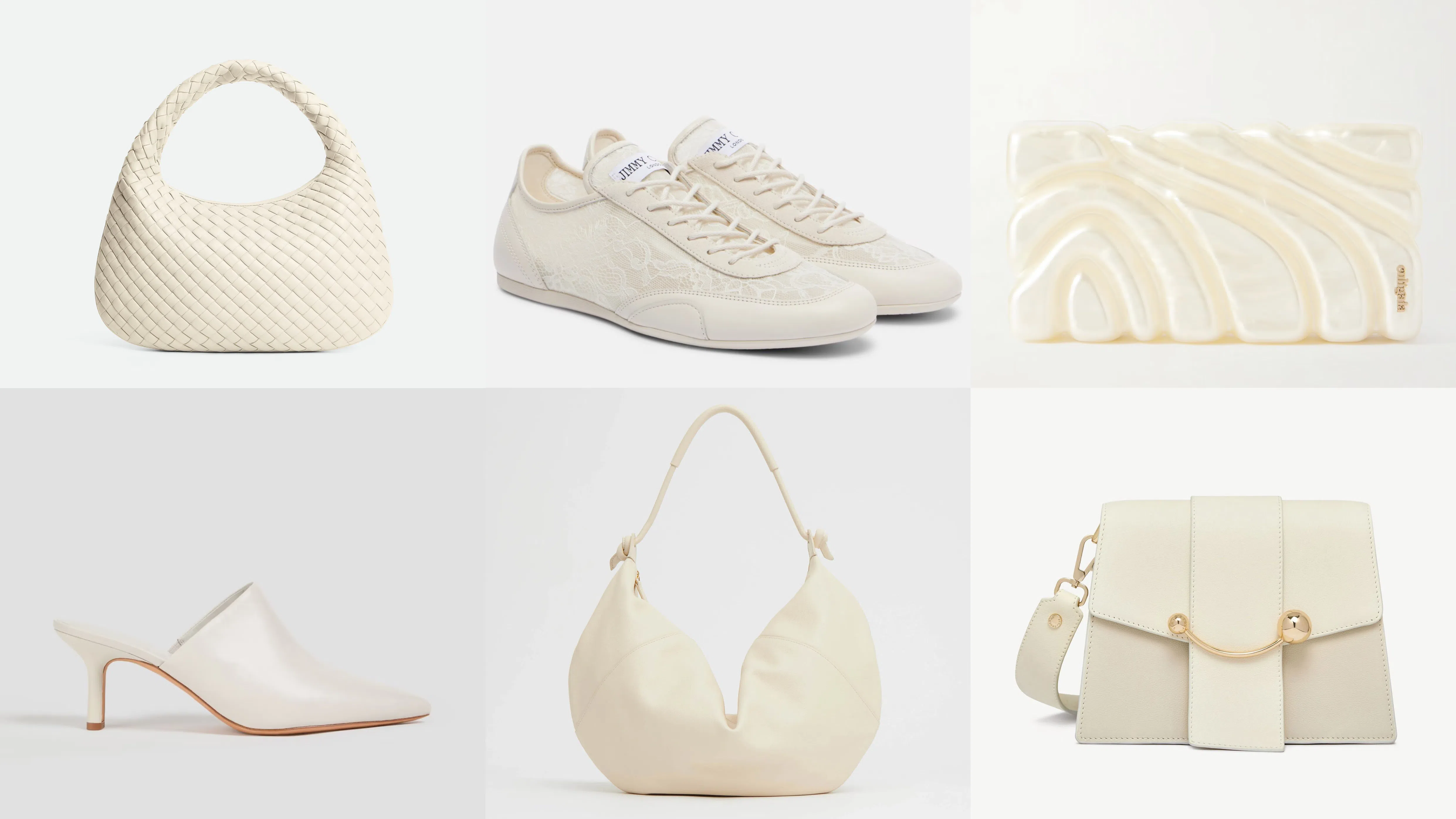 2026年年度色Cloud Dancer(云舞白,PANTONE 11-4201)(图:Bottega Veneta, Mytheresa, NET-A-PORTER, THE OUTNET, Mansur Gavriel, Strathberry)