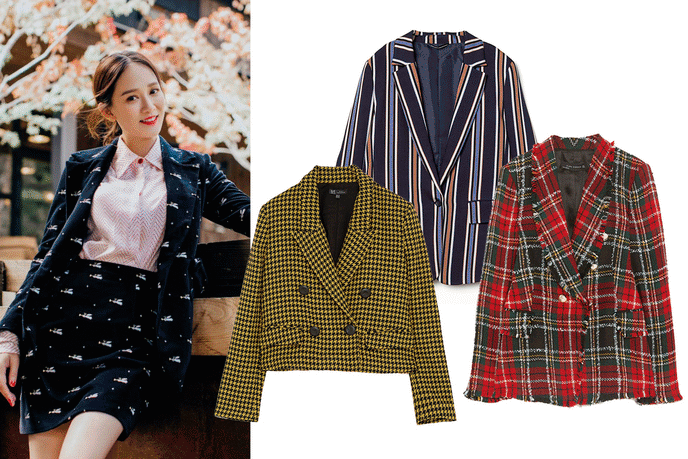谁说上班穿正装,就一定要素色才显利落呢?看陈乔恩这一身打扮,搭配淡粉色衬衫,甜美与气势都兼具。女友们不妨学起来吧!