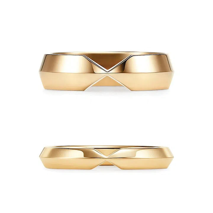 Tiffany & Co.的T系列虽然简约,但已经具有很高的辨识度。如果你喜欢不那么容易被认出来的款式,但又不甘于选择品牌最简约的Classic系列款式,那么试试这款具有V细节的对戒吧。