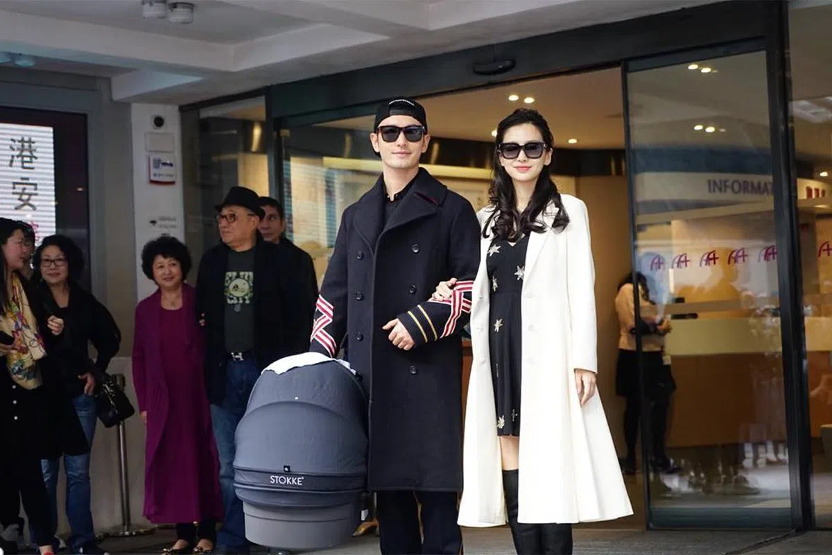 产后出院的Angelababy还不忘与新手爸爸黄小明穿couple look,两人戴上同款的墨镜与黑军靴。白色会 绷张?Angelababy没在怕,她身穿Saint Laurent星形黑连衣裙,外罩Dior白色长版大衣,与及膝皮靴的搭配更像是与老公现身机场的#airportfashion造型,完全看不出刚生完孩子!