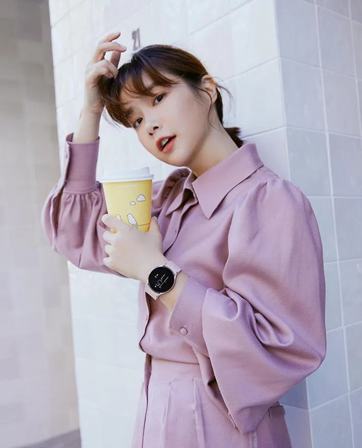 李佳颖甜美可人的形象穿上这身一色系衬衫和长裤,再以Samsung同色系智能腕表完装,“清一色” 的打扮吸睛指数爆表!