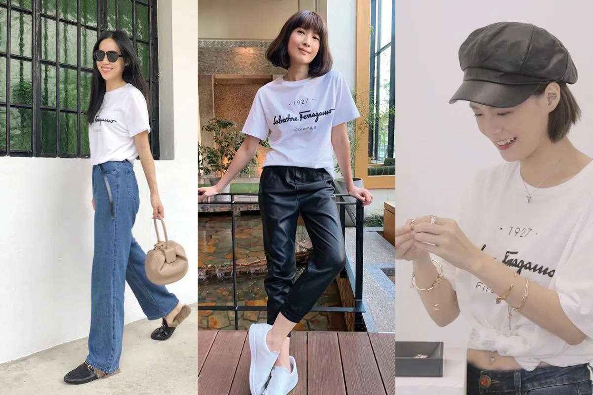 15 Nov 2019同款白LOGOT恤,哪位明星穿得最好看?最近,这件Salvatore Ferragamo白T恤超红,不少本地明星如林慧玲、欧萱、Hayley等都在instagram分享他们的穿搭照。你认为谁穿得最帅气?NUYOU TeamCELEBSfashionspottedwhoworeitbest1. REBECCA LIM 林慧玲休闲的Salvatore Ferragamo白T恤+阔脚牛仔裤,林慧玲利用造型抢眼的Gabriela Hearst饺子包及Gucci”毛拖”upgrade,展现街头潮女范。 2. JEANETTE AW 欧萱同一件Salvatore Ferragamo白T恤,欧萱选择以黑皮裤及白球鞋搭配,格外帅气有型! 3. JESSECA LIU 刘子绚刘子绚身穿Salvatore Ferragamo白T恤搭配紧身牛仔裤,造型与林慧玲相似,但披上黑西装外套后却展现出截然不同的霸气女总裁气势。她脚上的蝴蝶结鞋,最近很多本地女星也在穿哦! 4. HAYLEY WOO 胡佳嬑胡佳嬑为《女友》拍摄新策划——The NÜYOU Challenge时,同样以Salvatore Ferragamo白T恤及紧身牛仔裤现身。但。她在T恤打了个结可以露出蛮腰,搭配皮革报童帽既俏皮又散发一丝性感!5. DESMOND TAN 陈泂江陈泂江也穿上同款Salvatore Ferragamo白T恤,牛仔外套及运动裤的搭配让他穿出街头型男魅力。分享文章:
