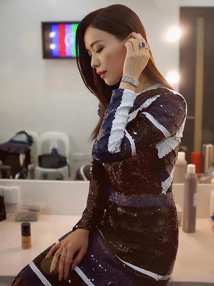林慧玲穿着Louis Vuitton亮片礼服出席红星大奖,并佩戴Longines腕表展现她一贯的优雅气质,同时还佩戴了她所代言的Goldheart Jewelry珠宝。