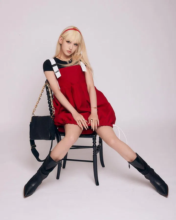 全昭弥的外形可甜可盐,在造型上变化多端。她在这里示范了娃娃般的清纯少女感,以Louis Vuitton早春2022的吊带连身短裙内搭黑T恤,并穿上黑色长靴。最画龙点睛的是头上的红色发箍,将整体造型的可人气质巧妙融合。