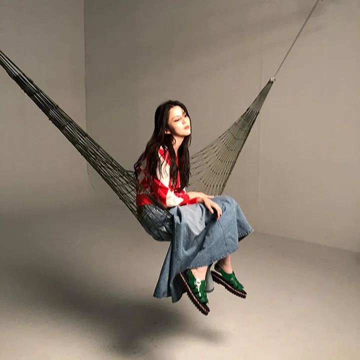 早前演出《以吾之名》的韩国女演员文佳煐出席品牌Burberry在济州岛设立的镜面山快闪店。红色的长袖上衣搭配舒适的运动型长裤,再披上Burberry的经典格纹长板外套,整体廓形舒适时尚有质感。