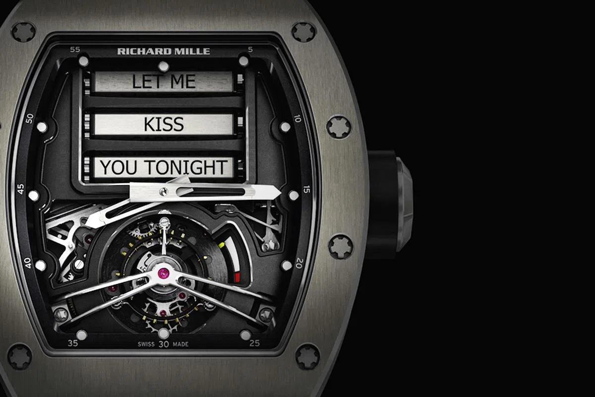 7 Oct 2015“成人”表款一向作风大胆的表牌Richard Mille再次突破自己,推出RM 69 Erotic Tourbillon表款。NUYOU TeamrichardmilletimepiecewatchwatchandwondersWatches&JewelleryRichard Mille最新Erotic表款,用现代的方式将人类最原始的欲望镌刻在了腕表上大胆!说的是表款的名字和腕表的“成人”概念!表盘一半的面积由三根刻印着短句的转轴占据。转轴由钛金属打造,赋予表款粗犷的工业感。每根转轴分六面,上下排列。上面刻着诸如I want、Kiss、Tonight等性感又挑逗的词句,连起来读则会组成一个完整的句子,允许你想入非非。这项复杂的机械可通过位于10点钟位置的按钮启动,每按一次,词组则会重新翻滚排列,共可转换216种不同组合的短句。表款同时搭配陀飞轮机械,趣味同时不忘精准,并拥有69小时动力储存。分享文章: