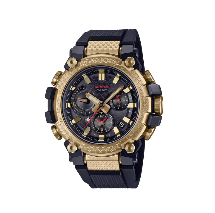 G-SHOCK推出限量版MTG-B3000CXD龙年腕表,这款腕表采用精细蚀刻和激光技术模仿龙鳞,金色离子镀层增添奢华感。腕表背面刻有上升龙图案(龙纹图案出自中国当代篆刻艺术家,西泠印社副社长韩天衡),象征力量和好运。此外,腕表支持蓝牙连接(可与CASIO WATCHES app项链),具有MULTIBAND 6、Tough Solar技术和高亮度LED照明。这款限量腕表不仅代表龙年,也展现了G-SHOCK的创新精神和工艺。