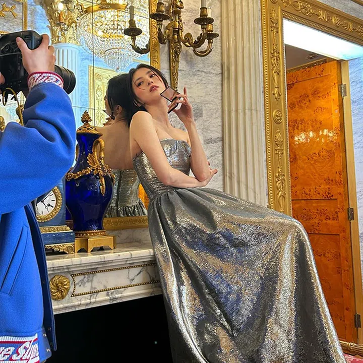 今年一月张元英出席首尔歌谣大赏(Seoul Music Awards),一张和IVE团员的合影引发粉丝热议,为何向来以高挑身高著称的她,竟然在照片中比其他成员更矮?当然不是穿错了衣服,这身ROKH礼服在大家迷惑之余也同样收获了不少好评。而“变矮”的原因,其实是因为其他成员都 穿着高跟鞋,而张元英在礼服下仅穿着平底玛丽珍鞋——是不是仍感觉很惊讶,如此修长的礼服她竟不必穿高跟鞋?!