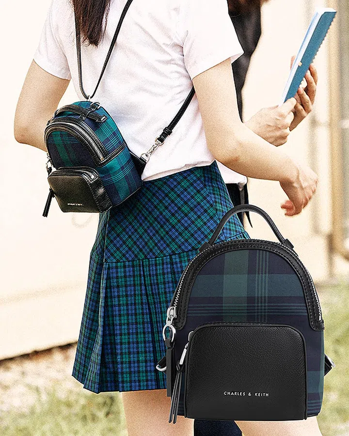 极具校园气息的绿色Tartan印花背包,背上身立马减龄。你还可以购买同花纹的口罩、球鞋、甚至Airpods收纳包。