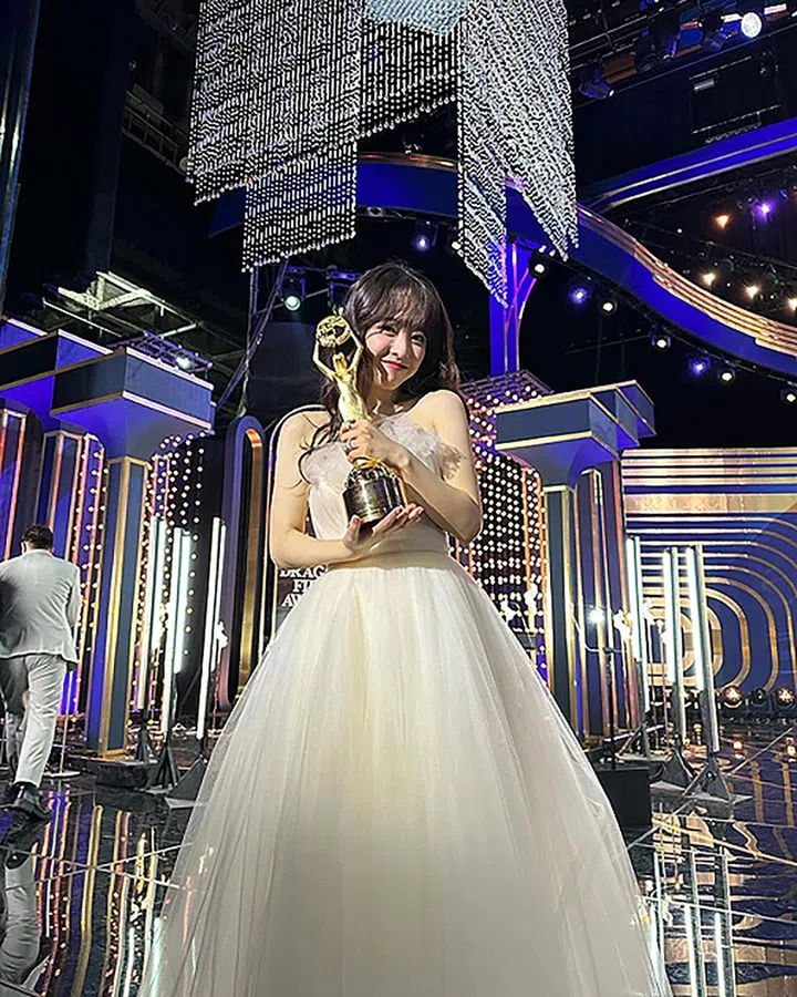 今年在韩剧《恋人》里以出色表现引起热议的安恩真,借由电影《画盲神探》成功入围了青龙奖。虽然与奖杯擦肩而过,但她以以色列品牌Lee Petra Grebenau的白色闪亮长裙亮相红毯,让人留下深刻印象。