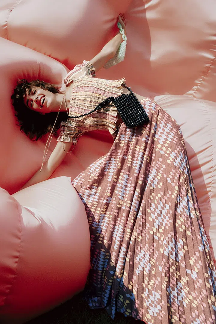 系列的设计灵感来自1990年代的品牌档案及目录,MAX&Co.轻盈又随性的女性美设计启发了她的创作,再结合有趣的色彩和印花,将品牌的经典单品演绎出活泼的现代感。Margherita说,当她在构思这个系列时,其实是想像着17岁的自己而设计的。难怪!这系列散发出一股纯真、清新的少女气息~