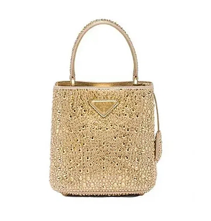 如果你曾一度为Prada的银色水晶缀饰服装及配饰着迷,那么小编强烈建议你尝试一下金色配色。从鞋履、发饰、手袋到手机壳,抢眼的金色让你的造型更加大胆、突出。