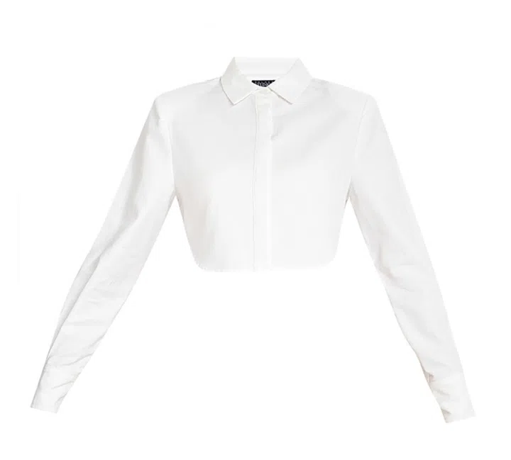 入时的简约短版白衬衣,让你穿出韩星的火辣风格。赶紧好好健身,然后穿上这件衣服出去炫腹!
