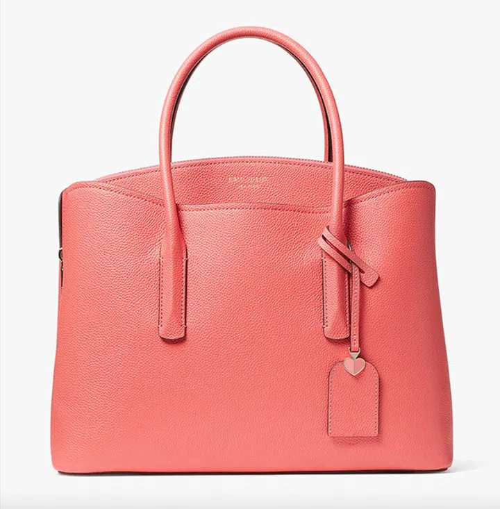 这款Peach Melba色调的手袋,颜色类似与今季大热的珊瑚粉。除硬朗的手提手柄外,也配备长肩带供你斜挎。