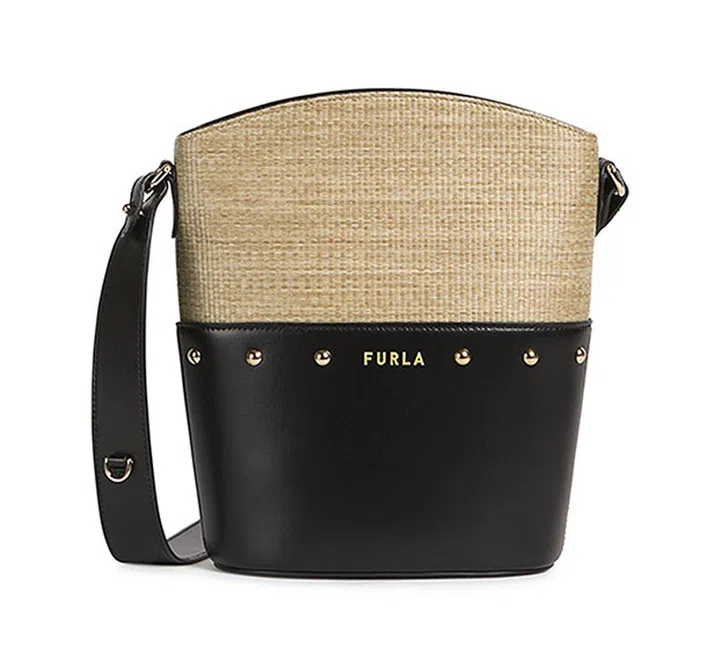 热度不退的拉菲草编织元素,结合光滑富有质感的黑色皮革及精美金色硬饰。这款轻便的水桶袋让你在平日和周末里都能轻松、时尚地搭配各种服饰。