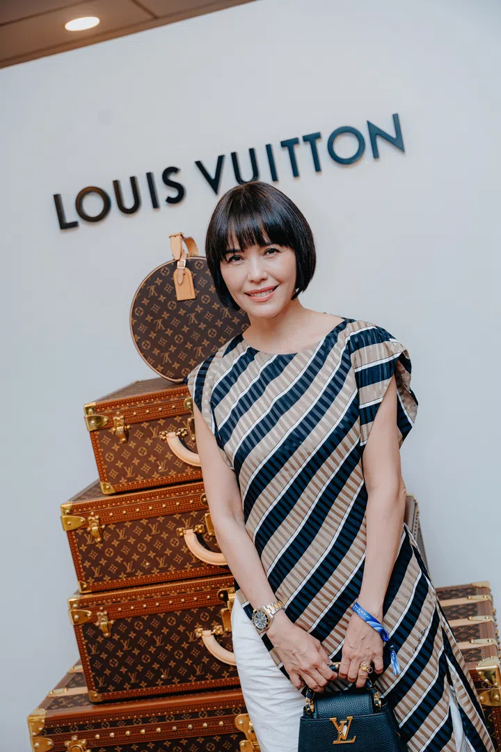 郑惠玉作为Louis Vuitton的铁粉,身穿品牌黑白斜纹上衣搭配白裤亮相F1新加坡大奖赛。她手拎经典Capucines袋型(堪称她最爱的LV包款),与整体造型相互呼应,诠释优雅而不失个性的时尚魅力。