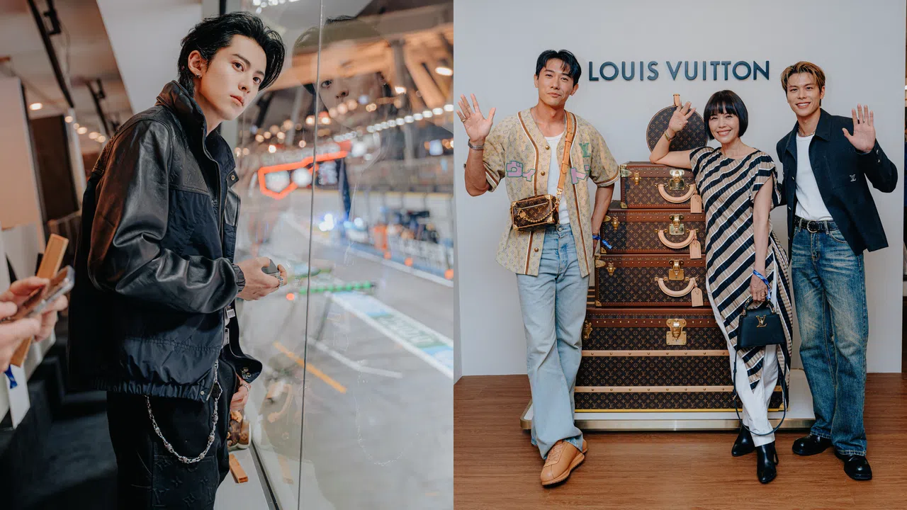 王鹤棣 (Dylan Wang)、陈泂江(Desmond Tan)、郑惠玉(Zoe Tay)及容启航(Glenn Yong)受邀在Louis Vuitton Paddock Suite观赛(图:Louis Vuitton)