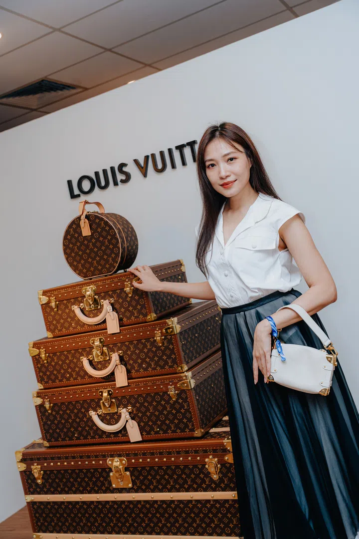 姚懿珊以Louis Vuitton白色无袖衬衣搭配黑白层叠纱裙亮相,造型轻盈优雅又不失个性。她手拎品牌Side Trunk手袋,以简洁线条和柔和色调展现出自在从容的女性魅力。