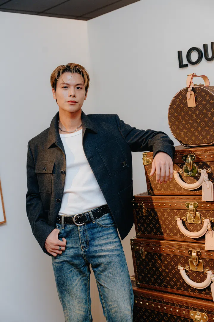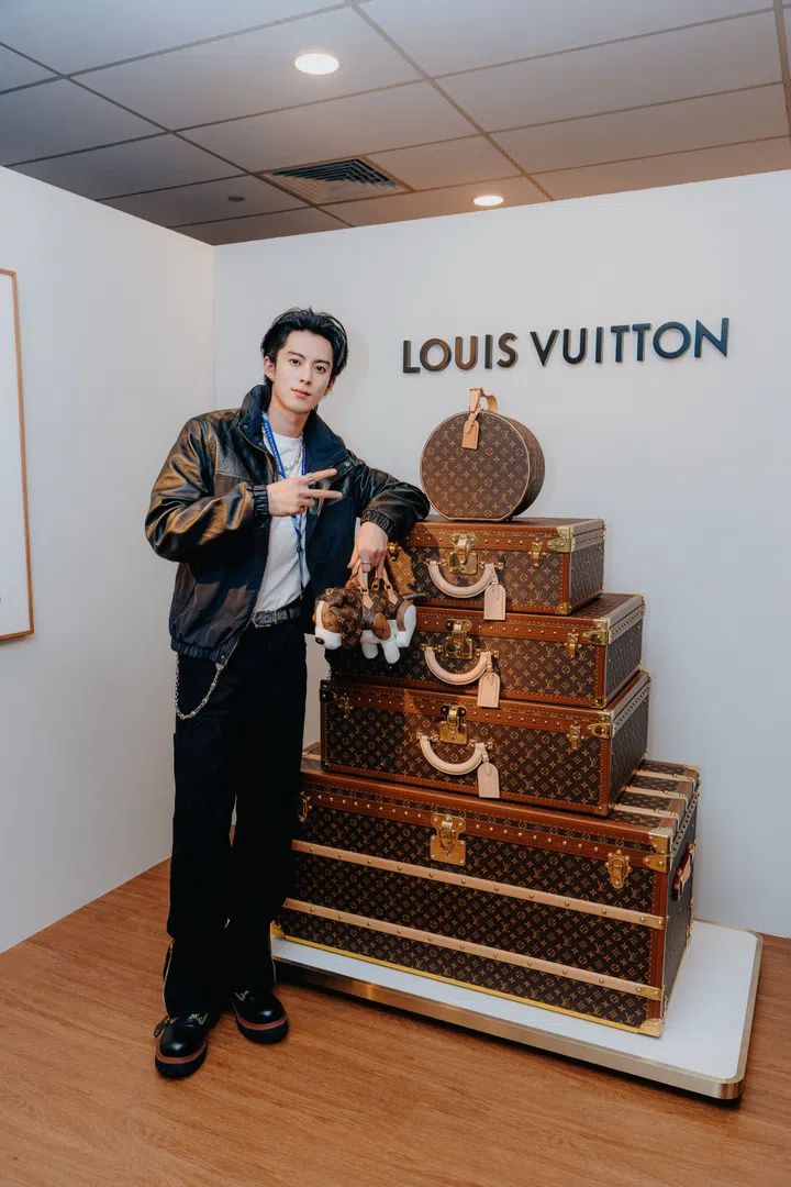 王鹤棣以Louis Vuitton配饰点缀整体造型,并在活动期间搭配品牌皮衣与鞋款,展现街头与奢华间的流畅切换,松弛姿态中带着锐气。