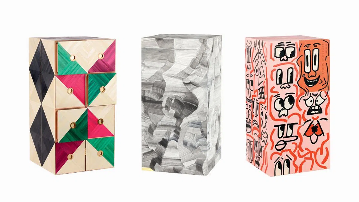 (左起)澳籍工业设计师Adam Goodrum和法籍镶嵌艺术家Arthur Seigneur创意组合Adam&Arthurisan作品、中国艺术家丘志杰作品、英国艺术家Aaron Kudi作品