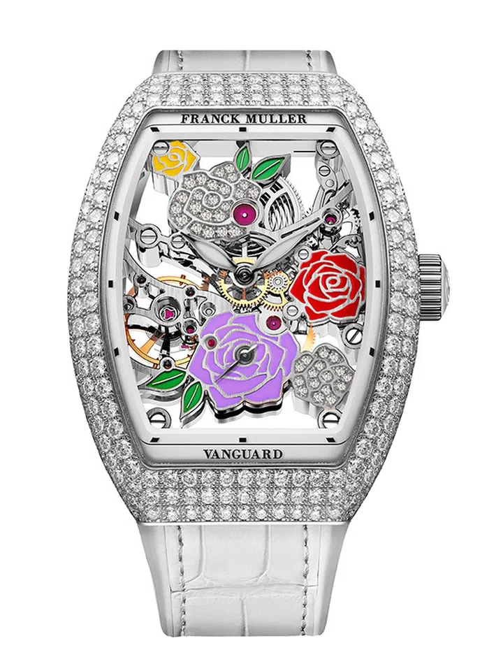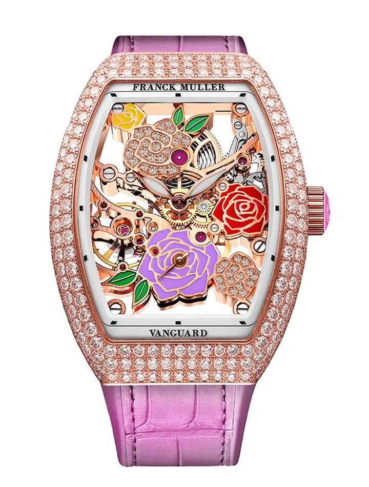 Franck Muller全新上市的Vanguard Rose Skeleton镂空腕表系列,以玫瑰和钻石做主角,借自然之美衬托女性的极致魅力。该系列推出粉、字、橙、黄、白、蓝、红七种缤纷配色,并有18K玫瑰金及白金两种材质可选。想要让日常更加斑斓,不妨在腕上点缀一抹浪漫粉。