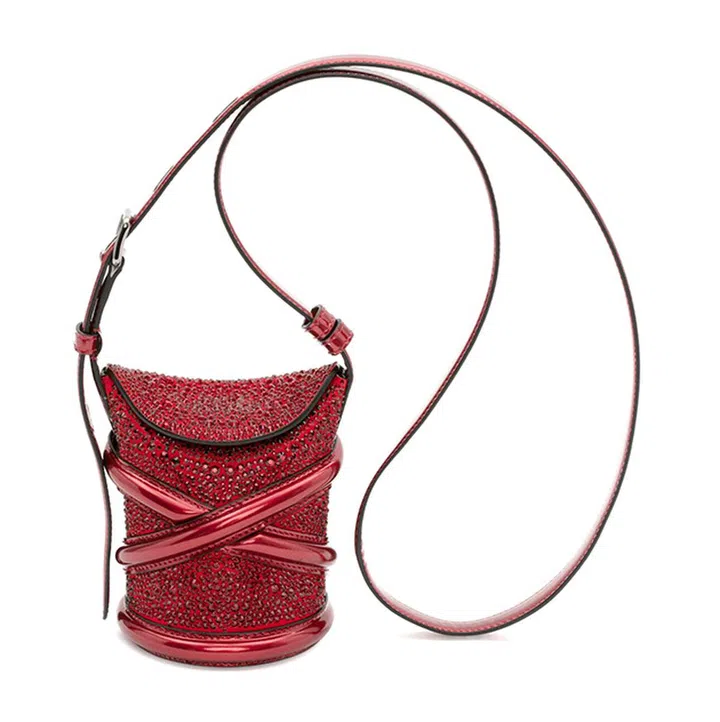 Alexander McQueen圣诞系列,今年为最夯的Curve水桶包做新诠释——在包包的红金属色小牛皮上饰以红色水晶,令整体更艳丽璀璨,十分应景。