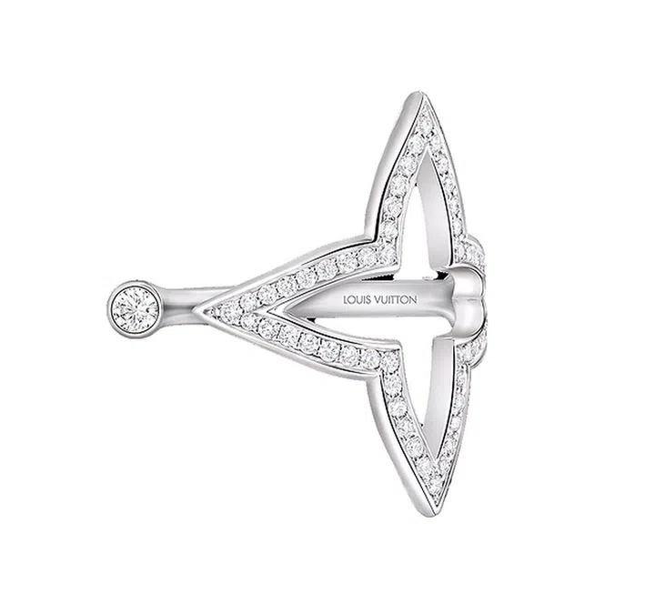 Louis Vuitton为Blossom首饰系列带来抢眼新作,重在以纯净线条诠释星形花的轮廓之美。同时,通过大胆尺寸和镂空Monogram星形花朵设计,打造更具图形美和线条感、也易于佩戴和叠搭的首饰。
